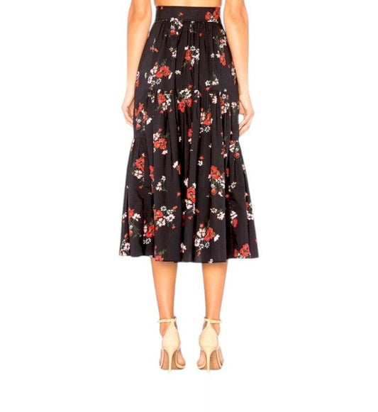 Rebecca Taylor Marguerite Skirt | Black Floral, Sz 6 US, Poplin Cotton, Tiered