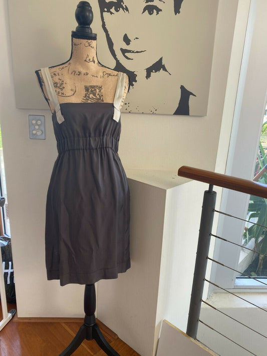Scanlan & Theodore Charcoal Dress / Contrast Straps, Acetate Cupro, Empire Waist