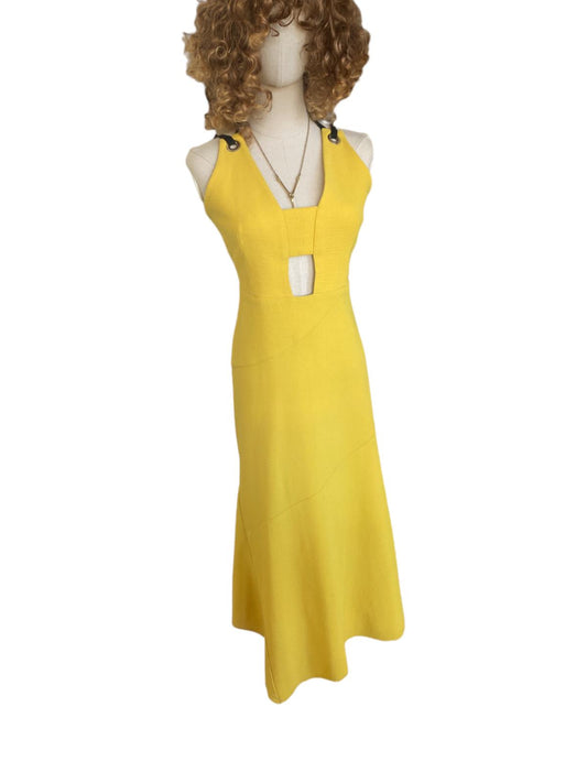 Rebecca Vallance Mustard Yellow Midi Dress | Open Back, Cut Out, BlackTie Detail