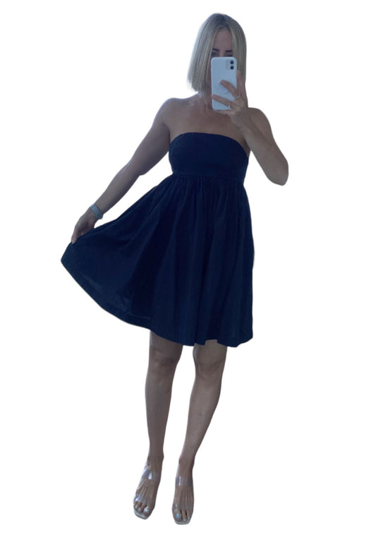 Steele Robbie Mini Dress |Baby Doll, Sz Med, Black, 100% Crisp Cotton, Strapless