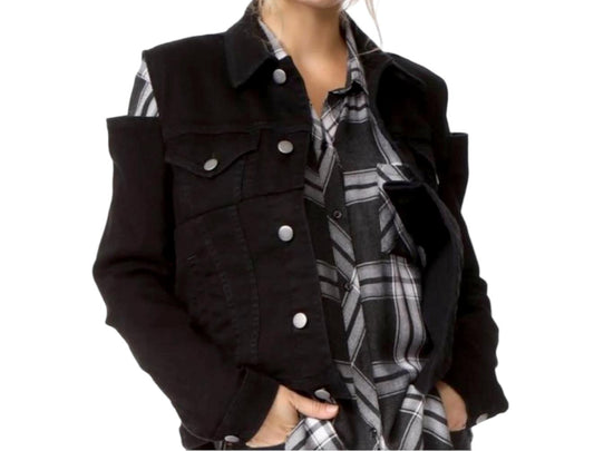 Frame Le Cutout Denim Jacket | Black, Size S, Cold Shoulder, Stretch, Oversized