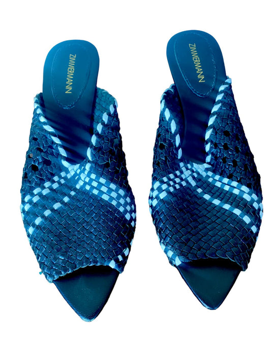 Zimmermann Leather Wicker Black/White Mules | Size 40, Kitten Heel, Point Toe