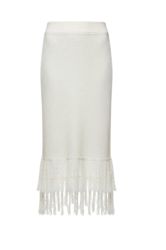 C&M Camilla & Marc Aint No Sunshine Crochet Skirt | Cream/White, Sz 10, Tassles