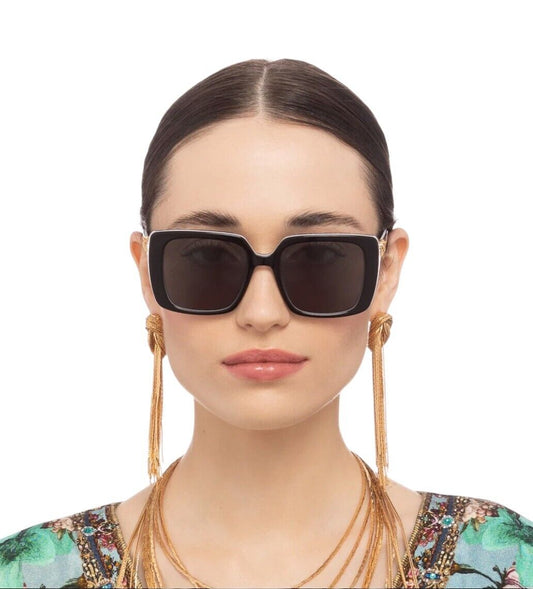 Camilla Happy in the Hamptons Sunglasses |Square,Black Acetate, Jaguar Print Arm