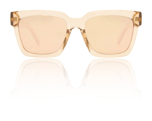 Le Specs Body Bumpin Sunglasses |Small Oval, Clear Sand, Mirror Polarized Lenses