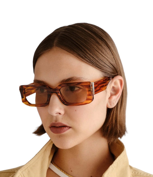 Le Specs Rippled Rebel Sunglasses | Rectangle, Tan/Brown, Striped, Brown Lens