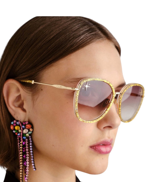 Camilla Luxor Life Sunglasses | Gold Glitter, Metal & Acetate, Round, Gradient