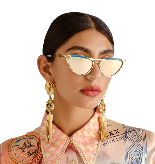 Camilla Pyramid Paramour Sunglasses | Turquoise Blue/Gold, Metal, Cat Eye