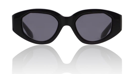 Karen Walker Castaway Sunglasses | Black, Acetate, Oval, Grey Lenses, Category 3