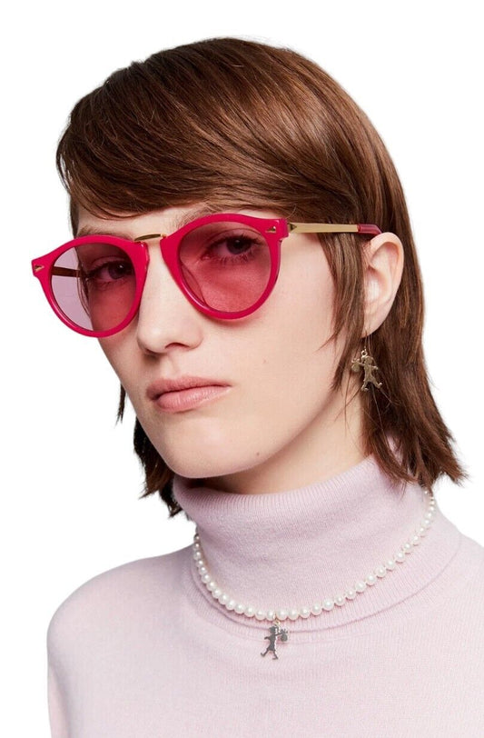 Karen Walker Helter Skelter Sunglasses |Fuchsia/Pink/Gold, Acetate/Metal, Round