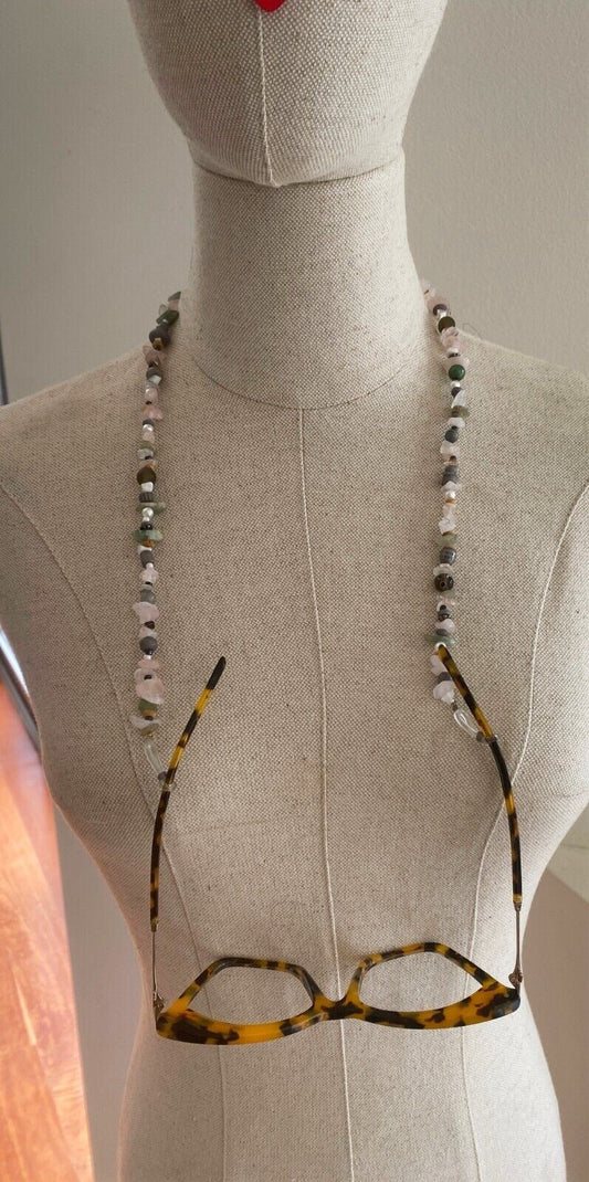 NAKED PEAR Semi Precious Stone Sunglasses / Glasses Chain, Holder, Earth Greens