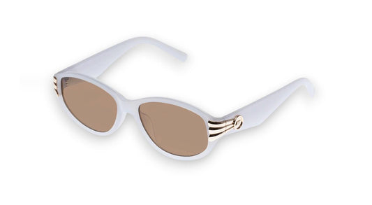 Le Specs Bombshell Sunglasses | White/Gold Hardware, Oval, Acetate, Alt Fit