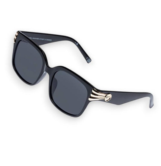 Le Specs Shell Shocked Sunglasses | Black/Gold Hardware, Clear Acetate, Square