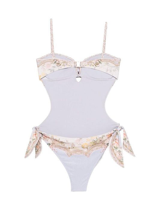 Zimmermann Wylie Scarf Tie One Piece | Blue Floral, Removable Pads/Straps
