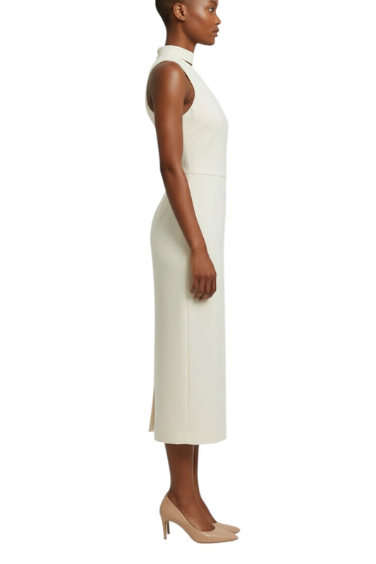 Zimmermann Neck Tie Midi Dress | Pearl/Off White, Pencil, One Shoulder, Stretch