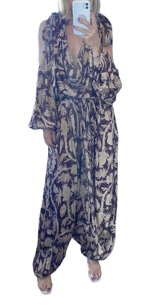 Zimmermann Silk Drape Jumpsuit | Navy | Off Shoulder Sueded Silk, Cowl $600 RRP