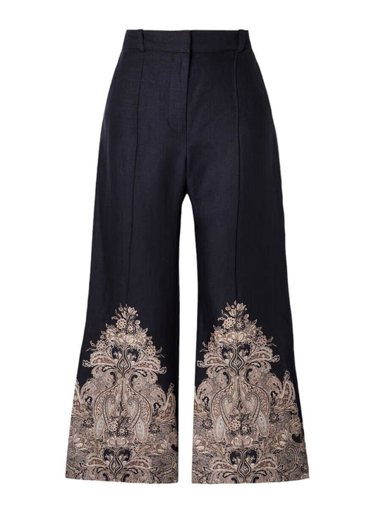 Zimmermann Natura Flare Pant | Navy Blue/ Paisley, 70's, High Waist, Crop, Linen