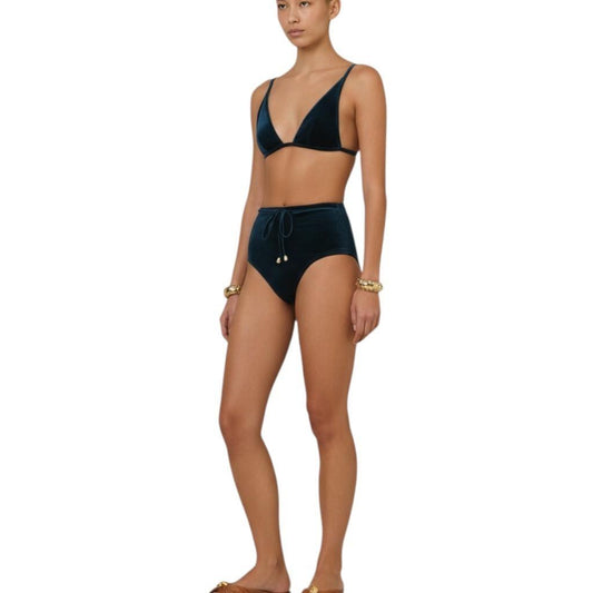 Zimmermann Tallow Velvet Tri Bikini Set| Teal Blue Velvet, High Rise, Triangle