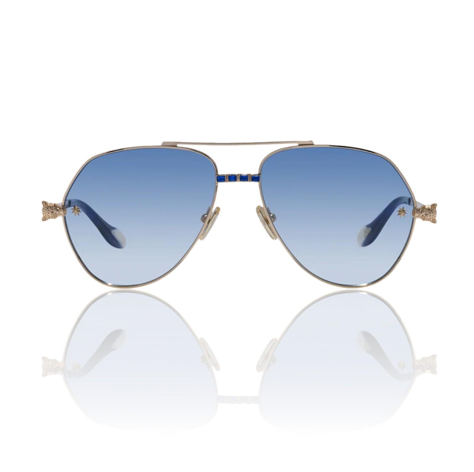 Camilla Nothing in Moderation Sunglasses | Aviator, Metal, Gold, Blue Gradient