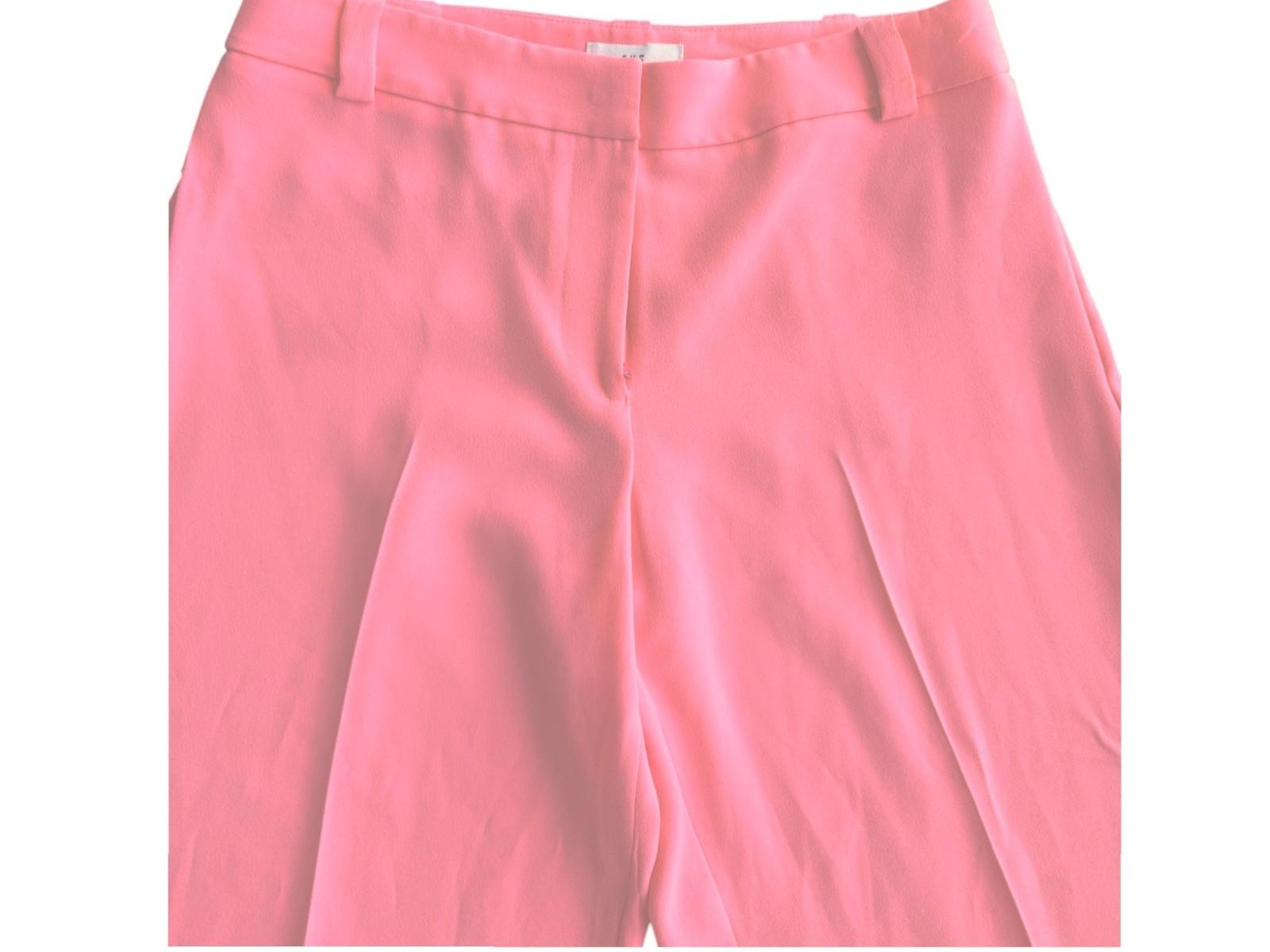 CUE Flat Front Wide Leg Pants/Trousers | Bright Pink, Sz 10, Mid Rise, Belt Loop