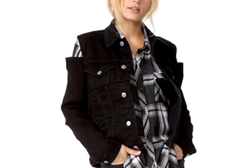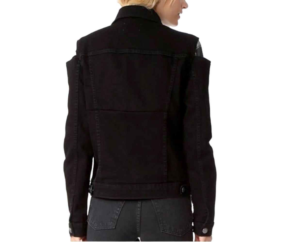 Frame Le Cutout Denim Jacket | Black, Size S, Cold Shoulder, Stretch, Oversized