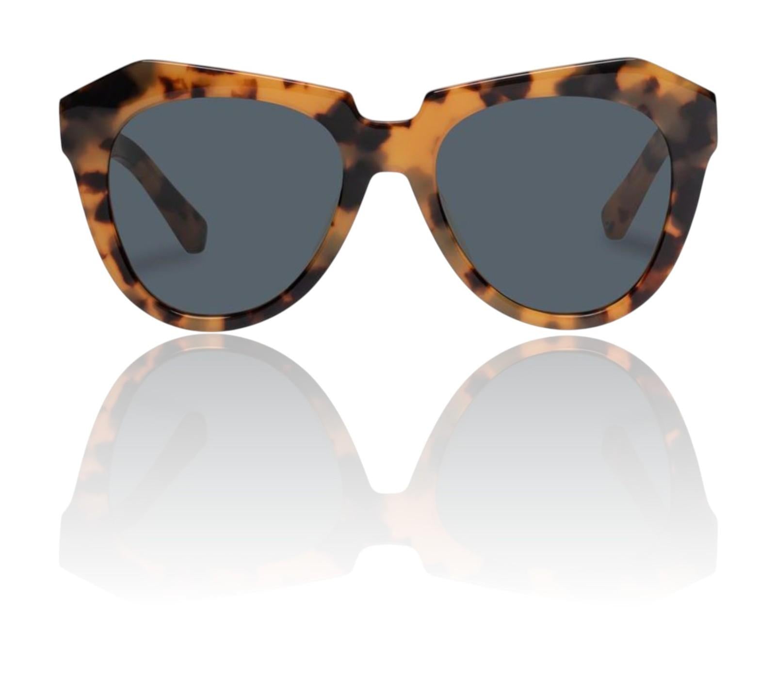The Number One Sunnies by Karen Walker represent dramatic angles in geometric shapes. They all curve seamlessly into a more circular shape, merging into a signature design. Karen Walker is a true legend in creating interesting shapes that sit well on the face! The Number One frame is no exception. Made from tortoise shell bio-acetate, the luminous frame is fitted with grey smoke mono lenses for a retro-glam look. The style is completed with a comfortable nose bridge, luxurious arms and our refreshed arrow hardware at the temple.
