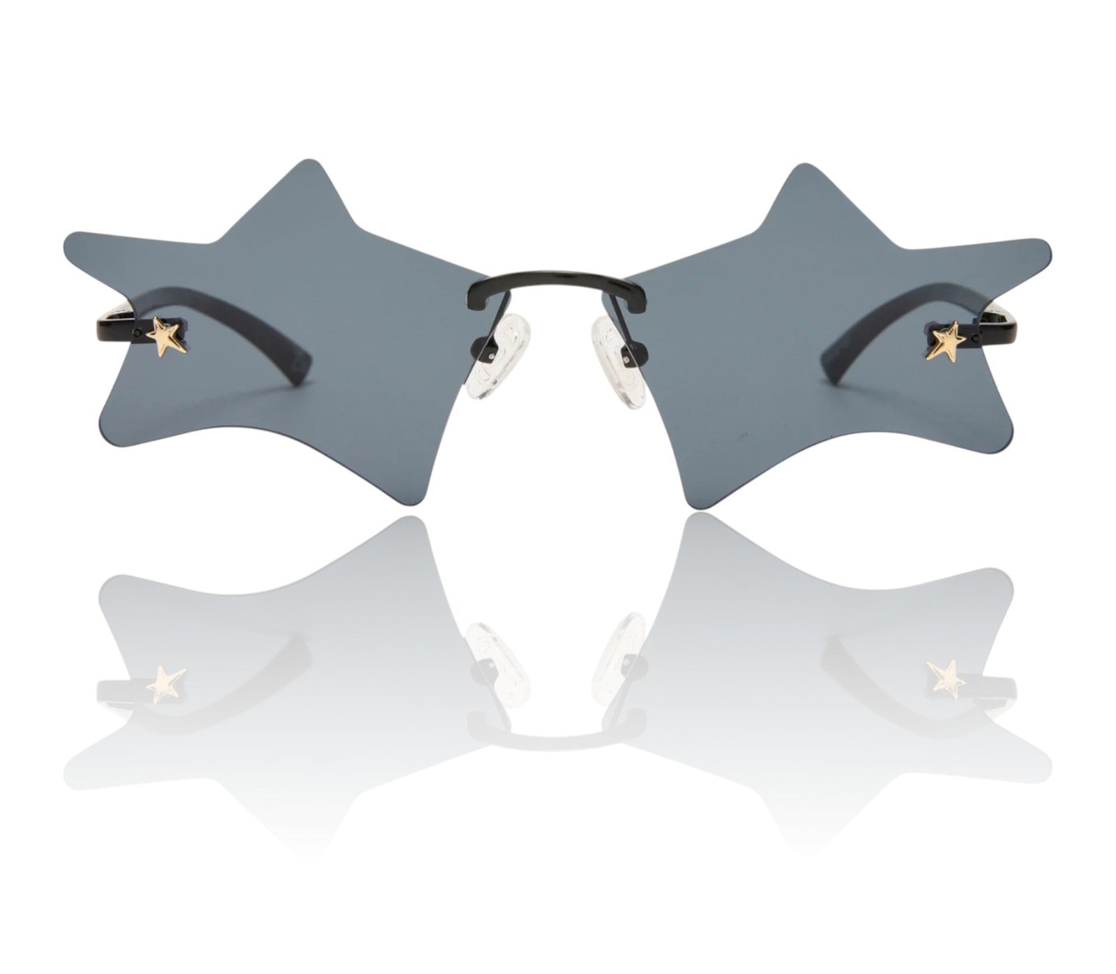 Le Specs Twinkle Sunglasses | Star Shape, Black, Rimless, Grey Lenses, 70s Inspo