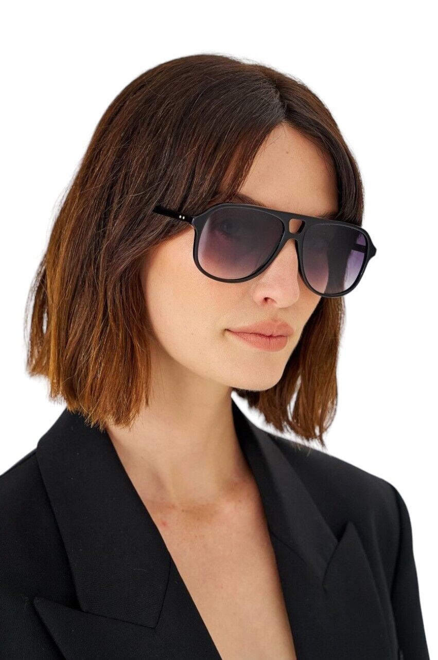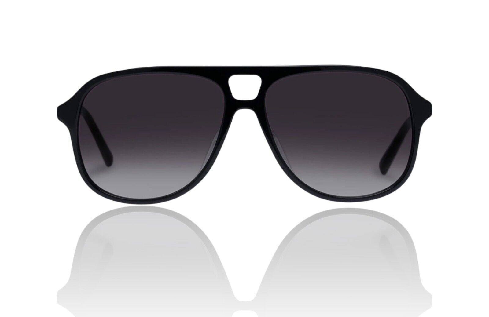 The Oroton Folk sunglasses are a fine, lightweight resort-style aviator shape in handcrafted black acetate. Coupled with cool smoke-graduated lenses, these frames offer a retro and timeless look. Oroton's signature rivet detailing also features on both temples in gold.