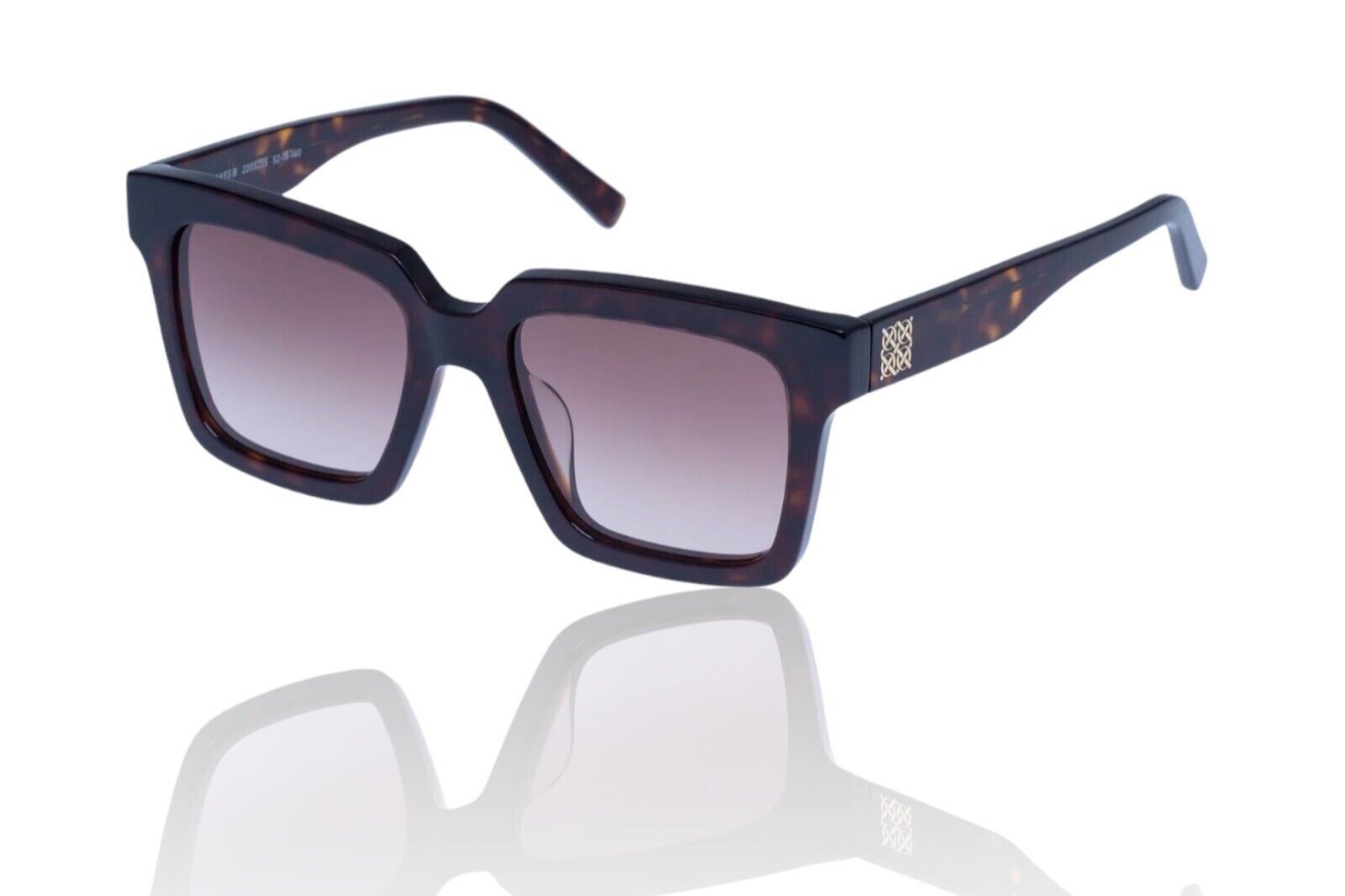 Oakes is a modern square shape that is medium-sized. This style features Oroton's new luxurious Oroton logo temple detailing. Oakes is handcrafted using signature tort acetate and features brown grad lenses.