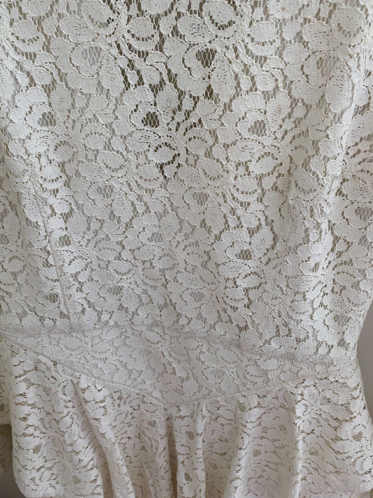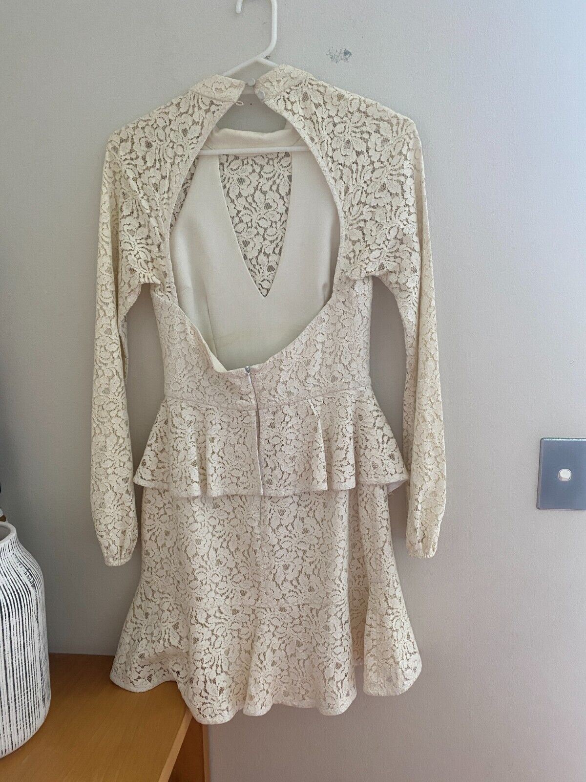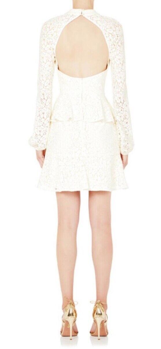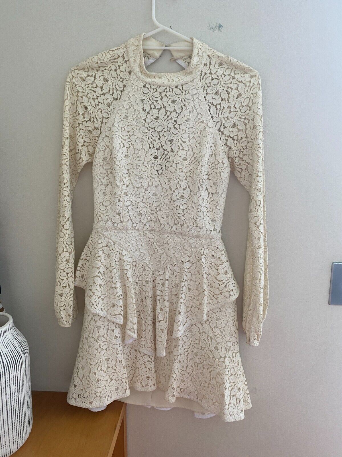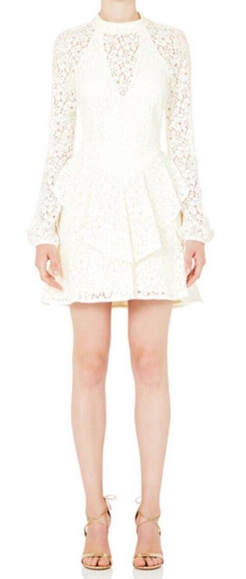Rebecca Valance Sistine Frill Mini Dress | White, Lace, Peplum, Bridal, Size 8