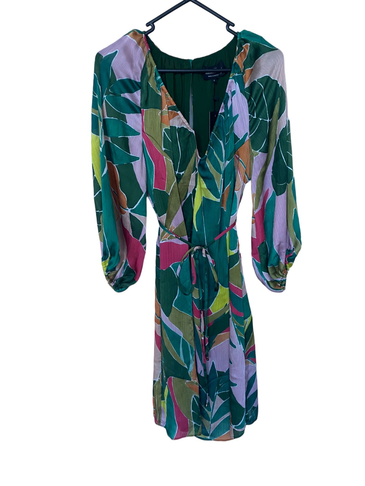 The dress is a size 8 but would potentially fit up to a size 12 as it is not a fitted style and is only cinched in at the waist. The arms are also elasticised. Fits sizes 8 to 12.