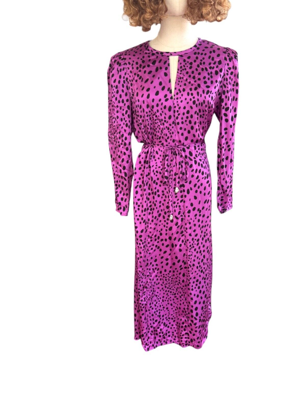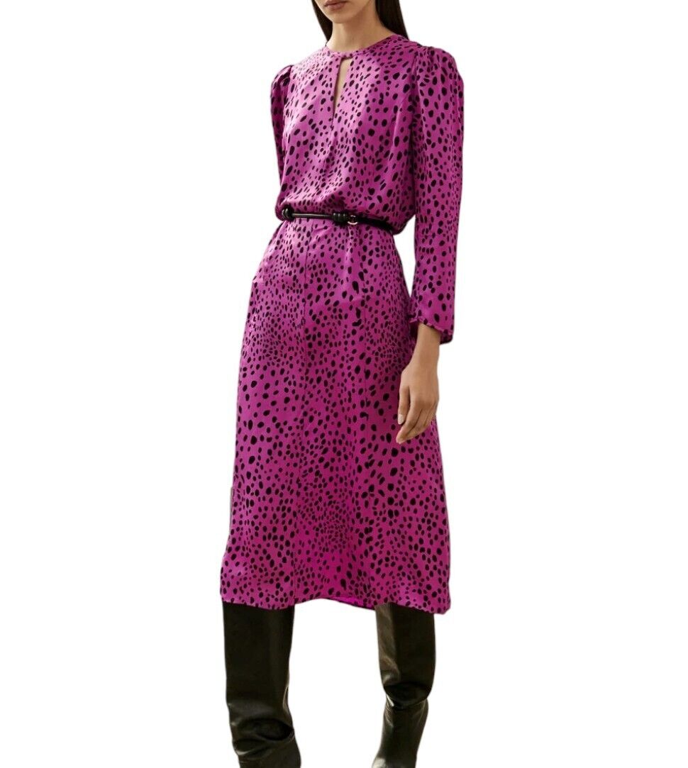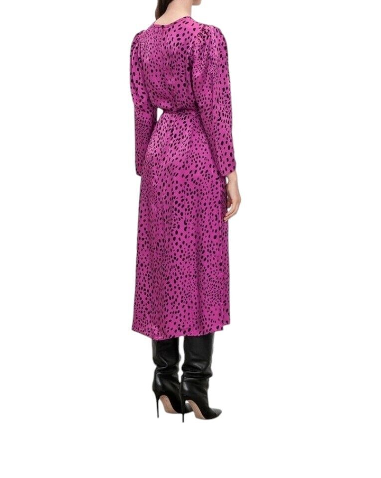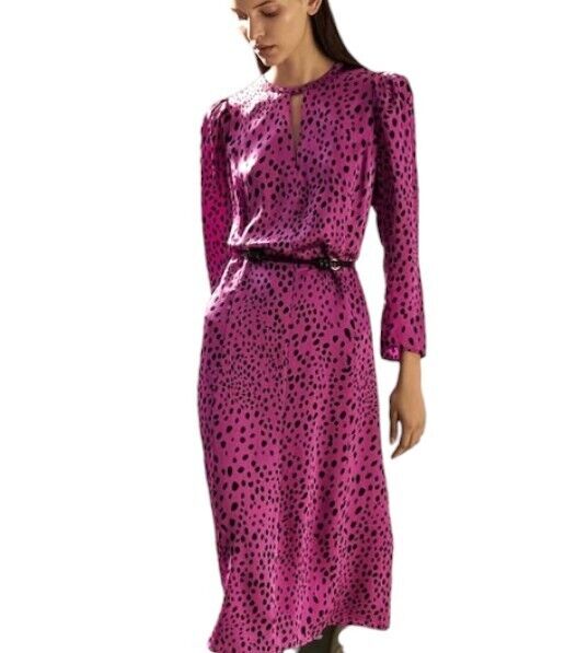Veronika Maine Forward Fuschia Pebble Print Midi Dress | Sz 10, Pink/Black, Belt