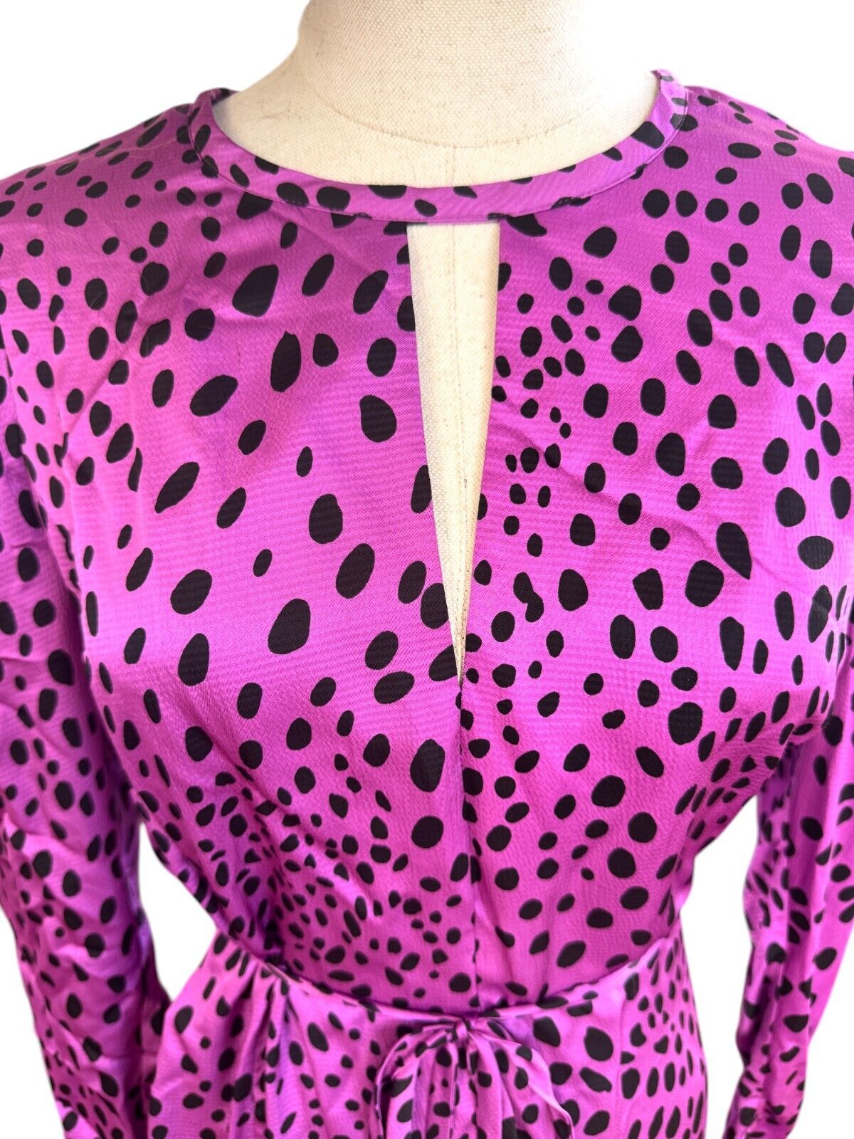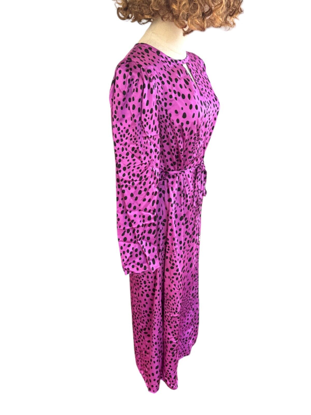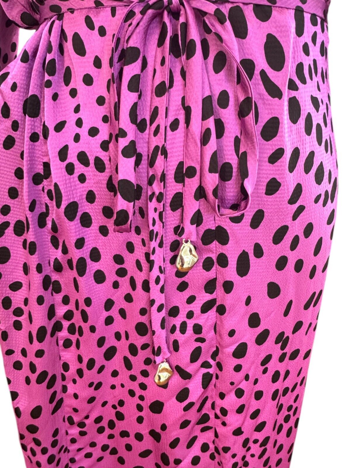Veronika Maine Forward Fuschia Pebble Print Midi Dress | Sz 10, Pink/Black, Belt