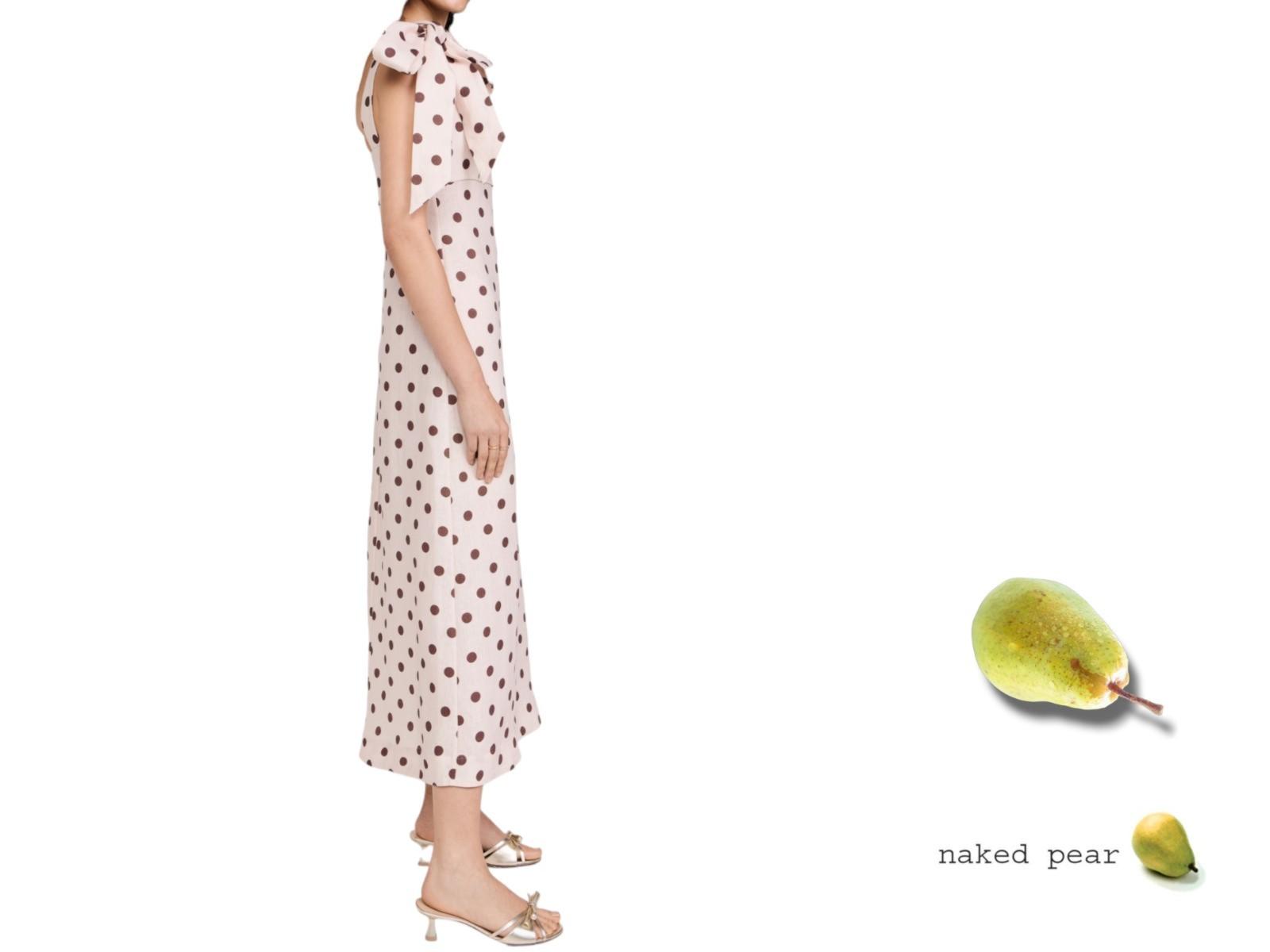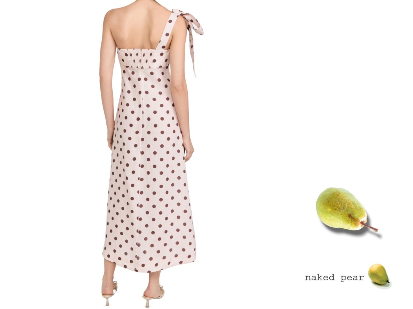 Zimmermann Acacia One Shoulder Midi Dress | Cream/Tan Polka Dot, Bow, Linen