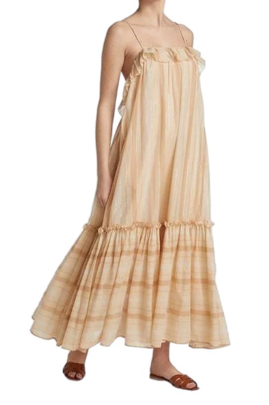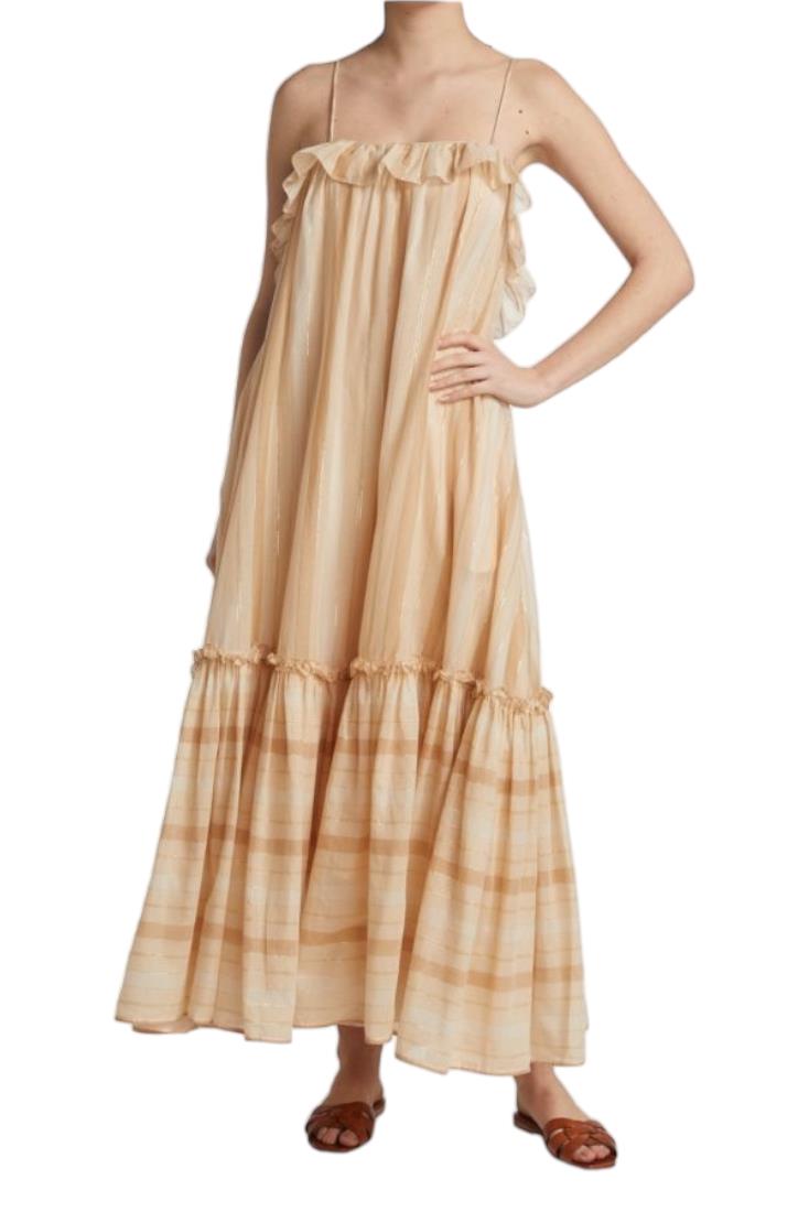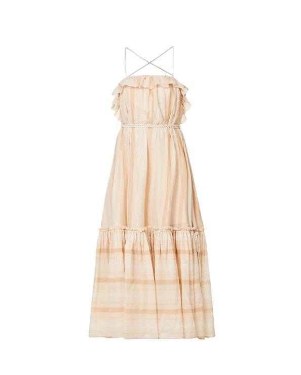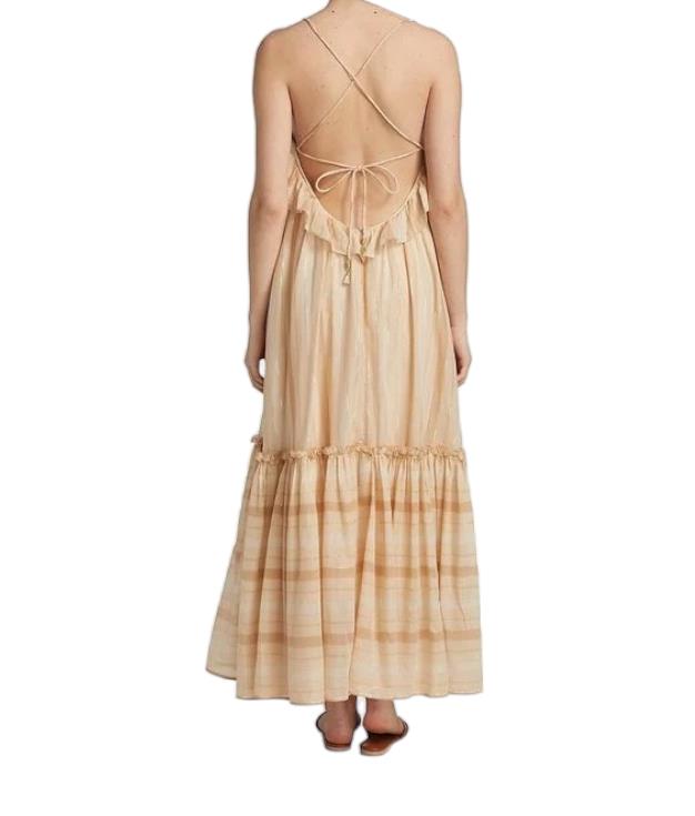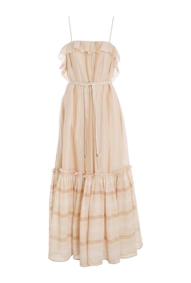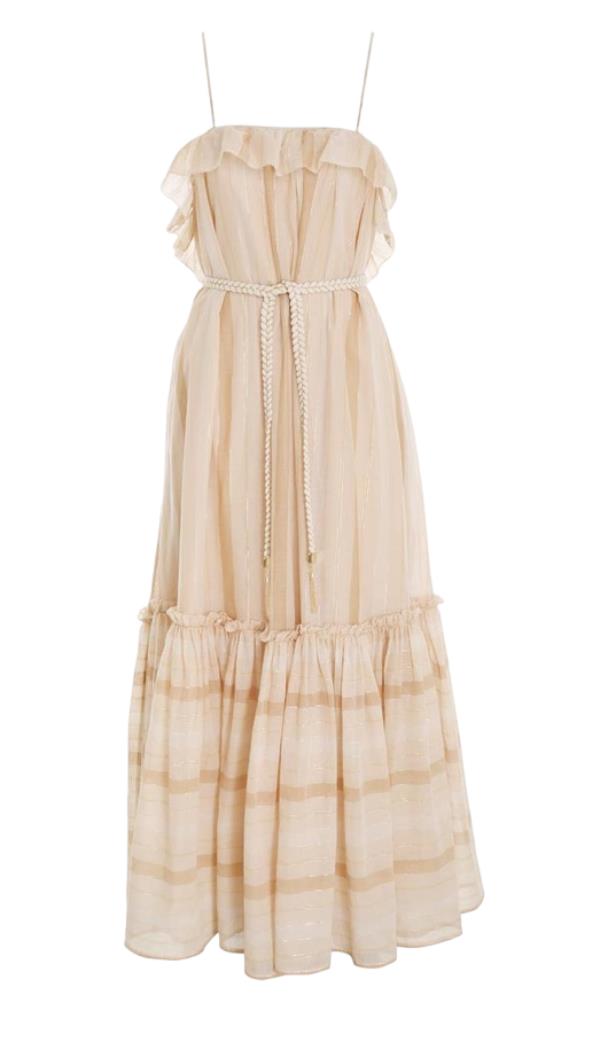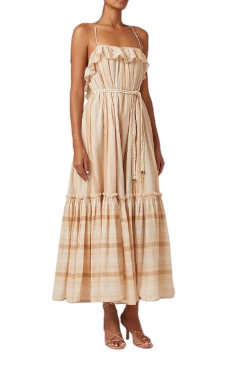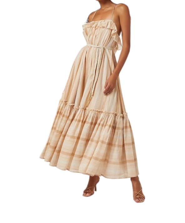 Zimmermann Anneke Swing Dress | Beige/Biscuit, Metallic, Cotton, Belted, Backles