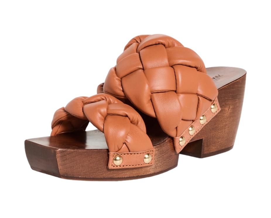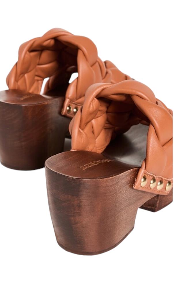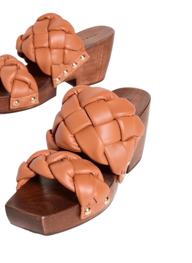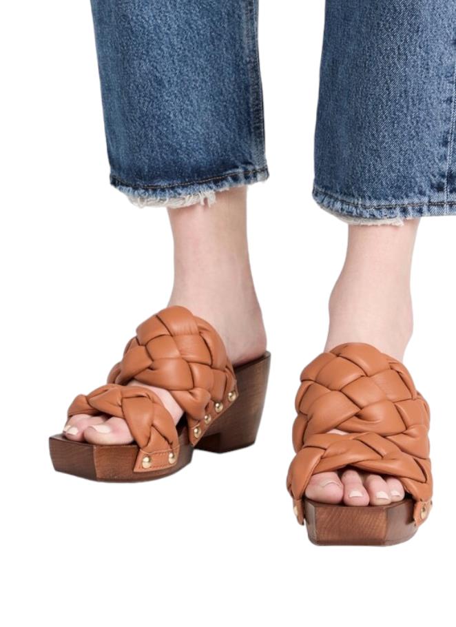 Zimmermann Braided Nappa Clog | Tan/Brown, Soft Leather/Wood, Wedge Sandals