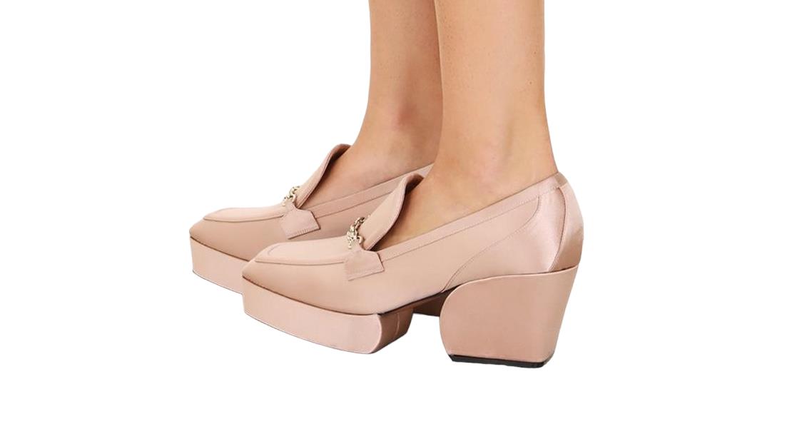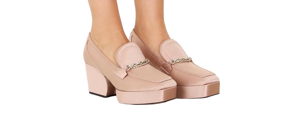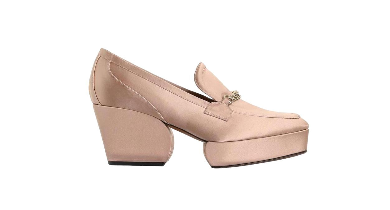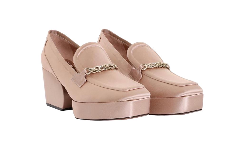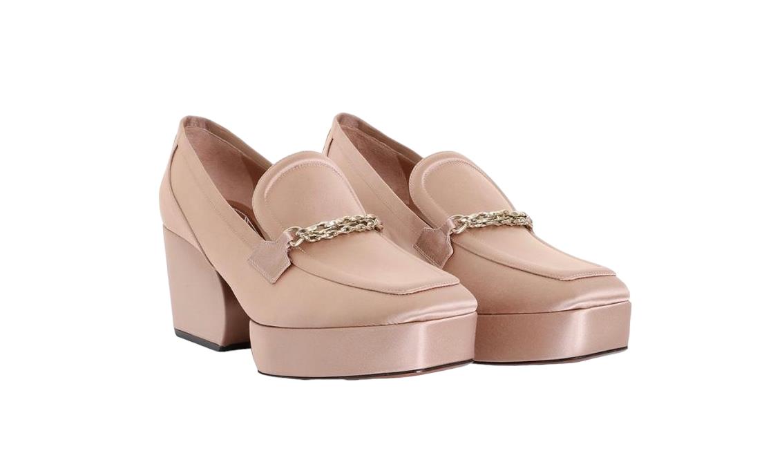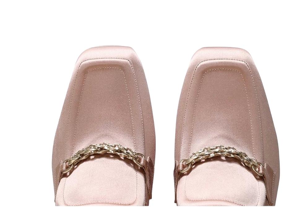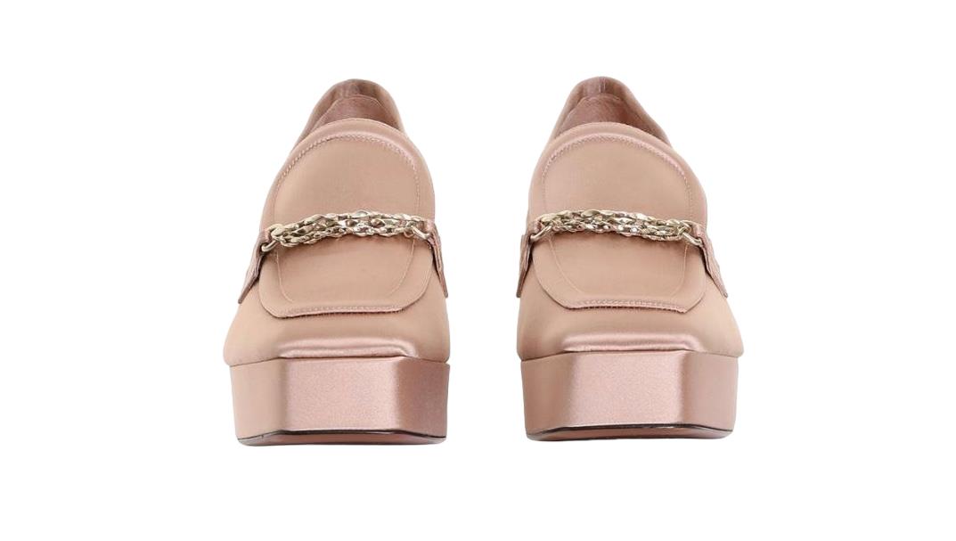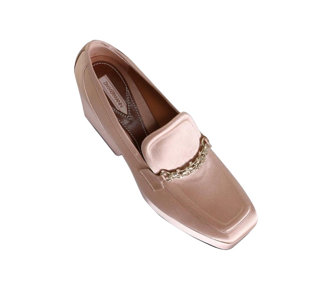 Zimmermann Crescent Satin Loafer | Blush/Nude, Platform, Gold Chain,Italian Made