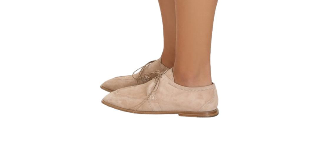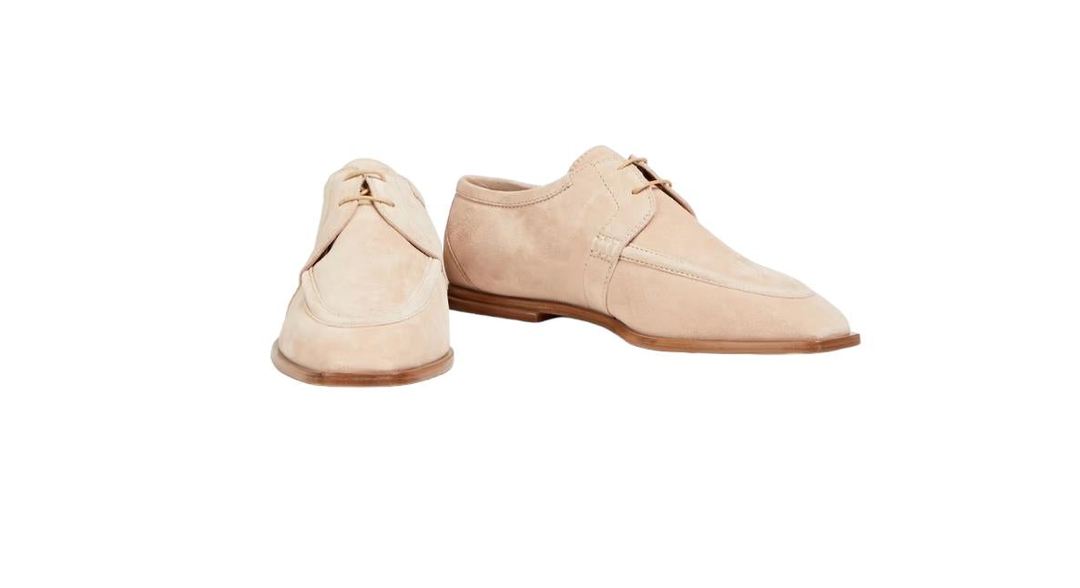 Zimmermann Lace Up Golf Shoes | Sand/Beige, Square, Suede, Flats ITALY made