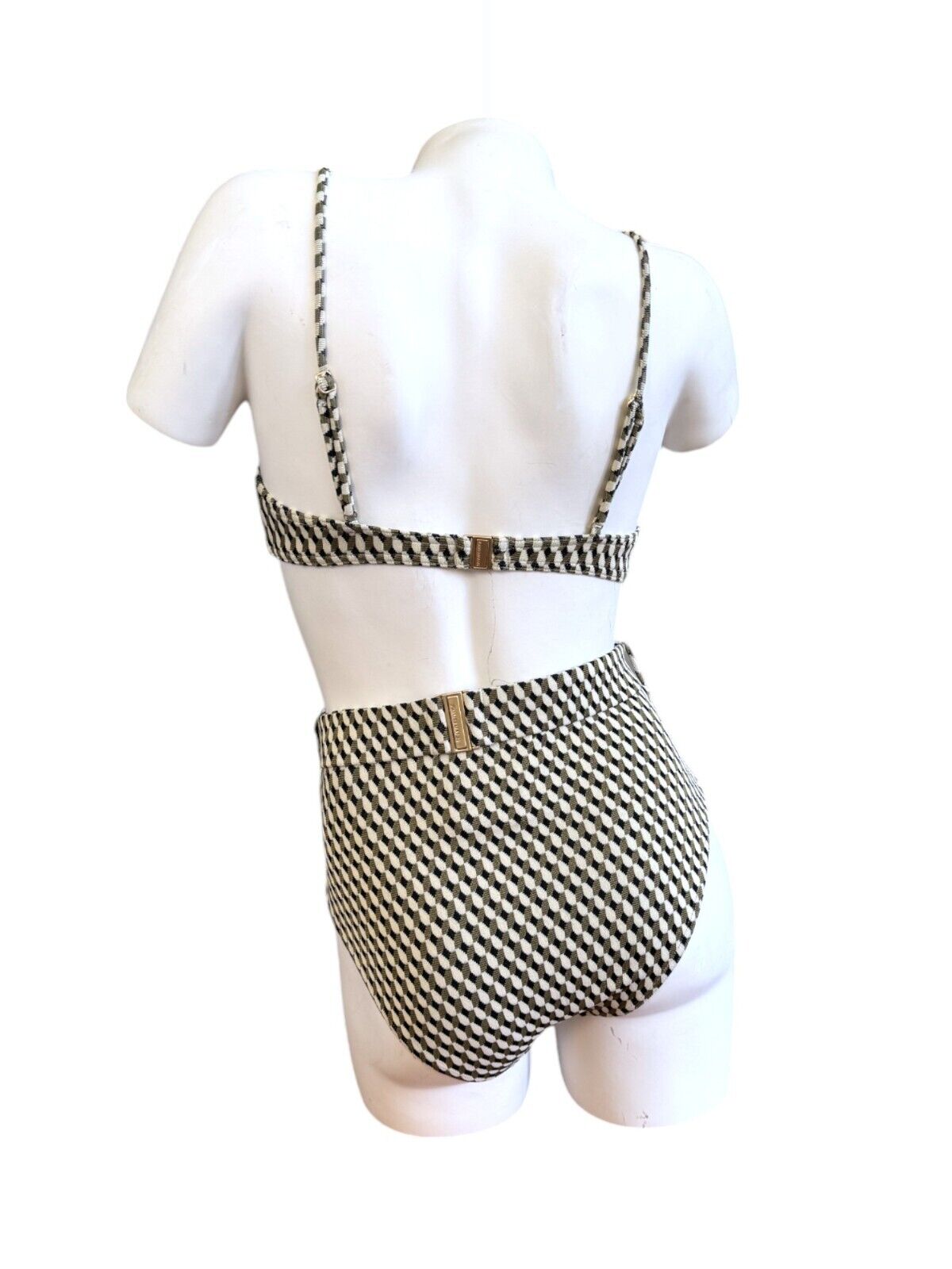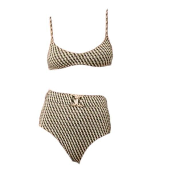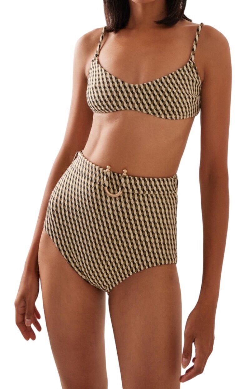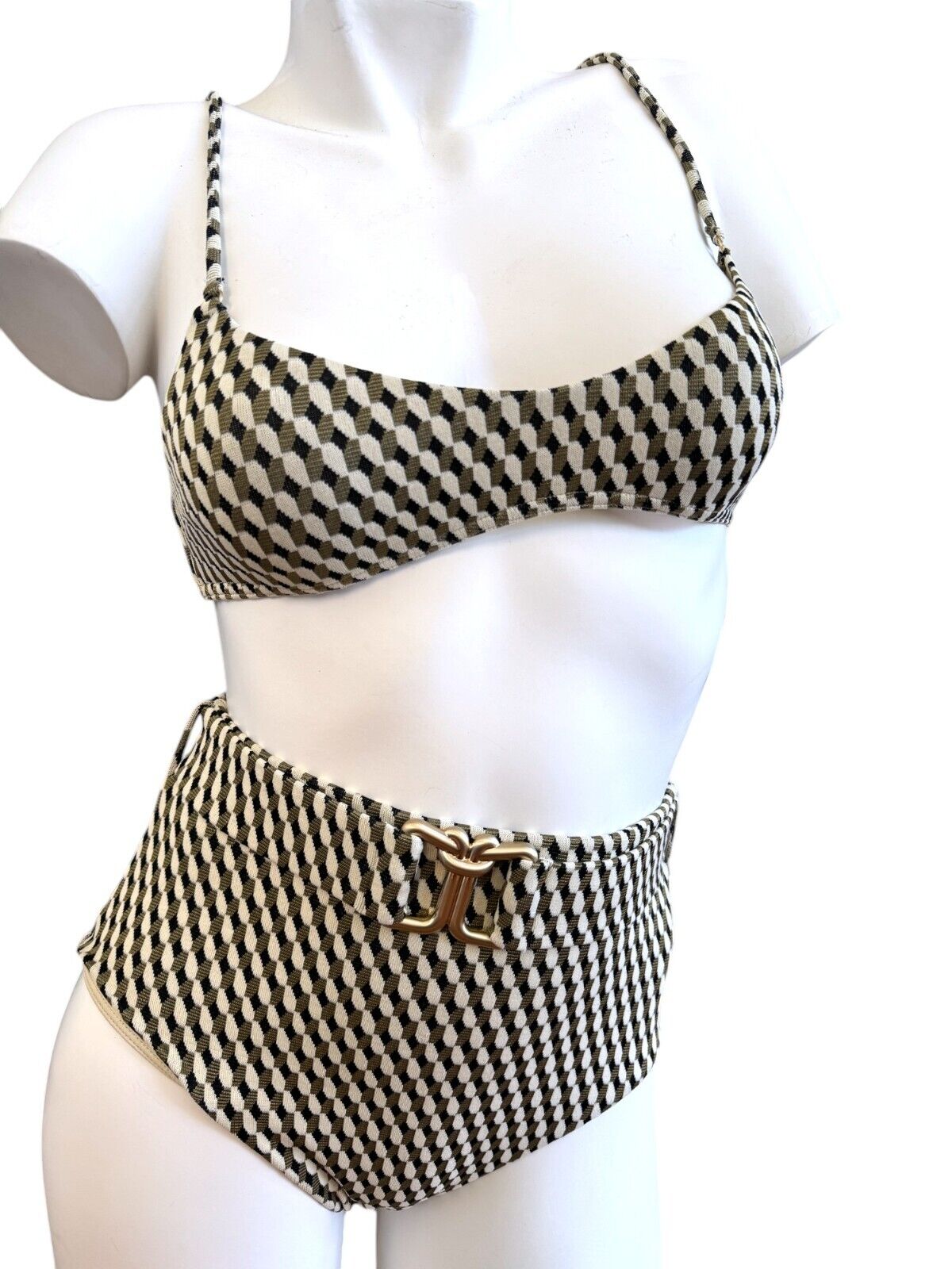 Zimmermann Lexi Textured Scoop Bikini | Black/White/Gold, High Waist, Belt