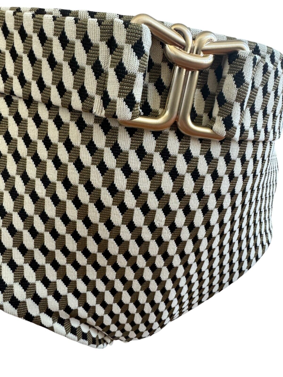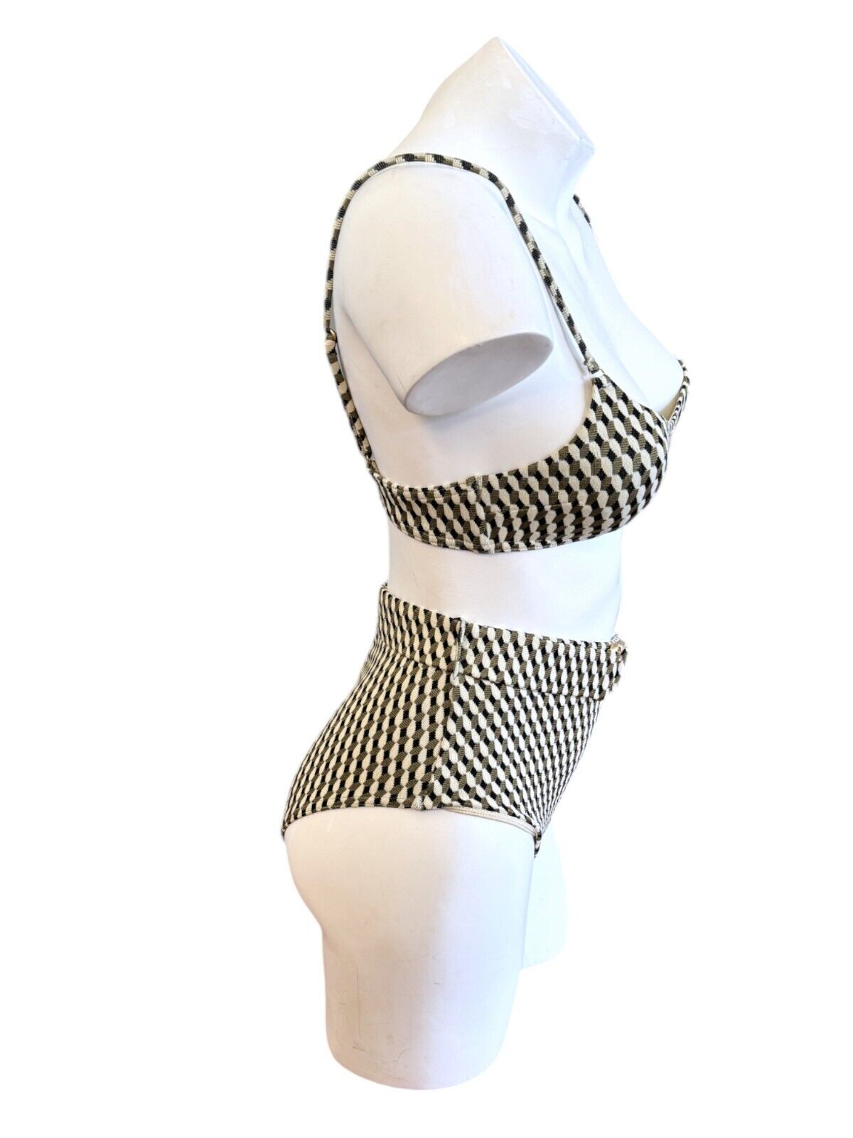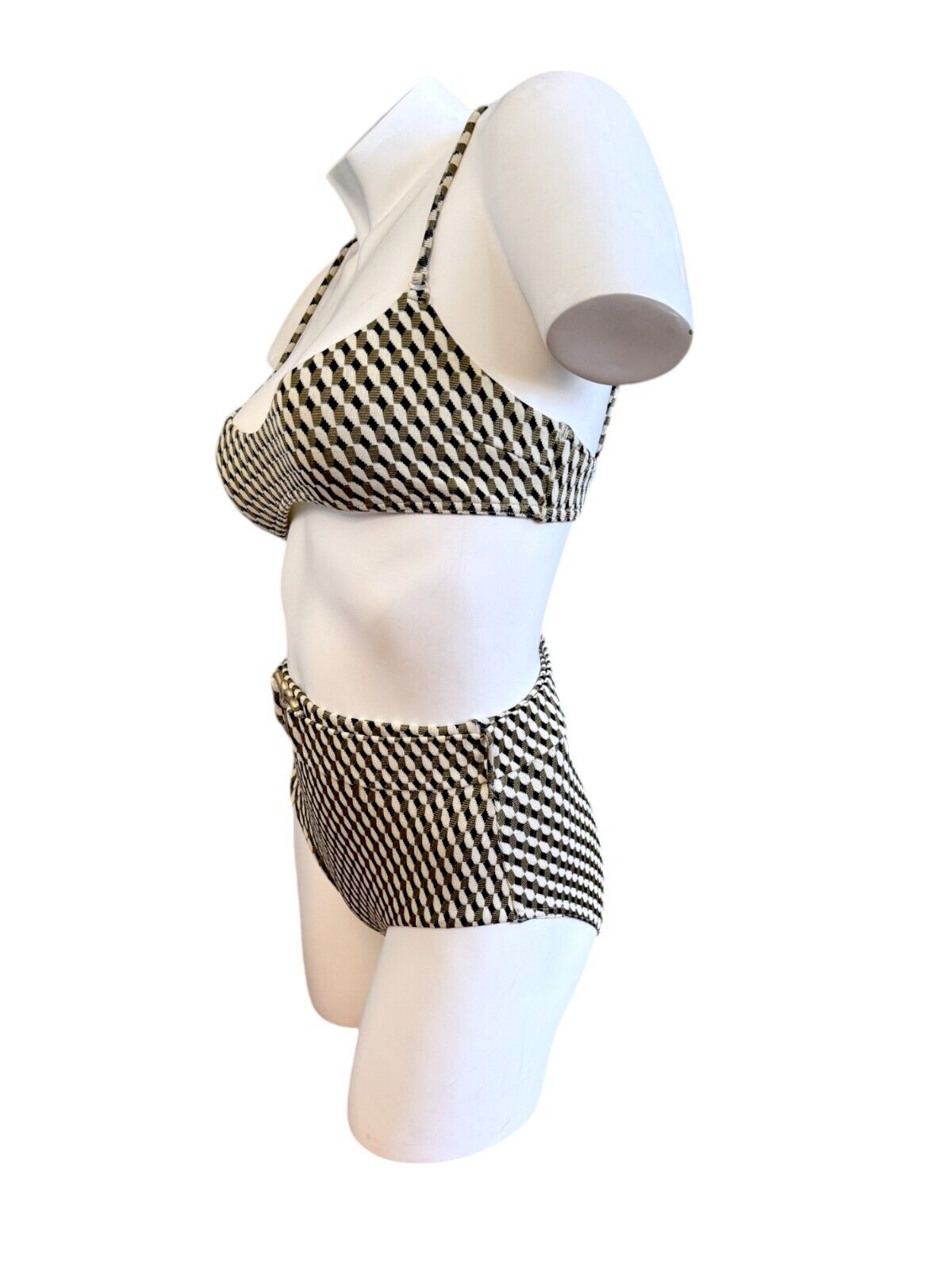 Zimmermann Lexi Textured Scoop Bikini | Black/White/Gold, High Waist, Belt