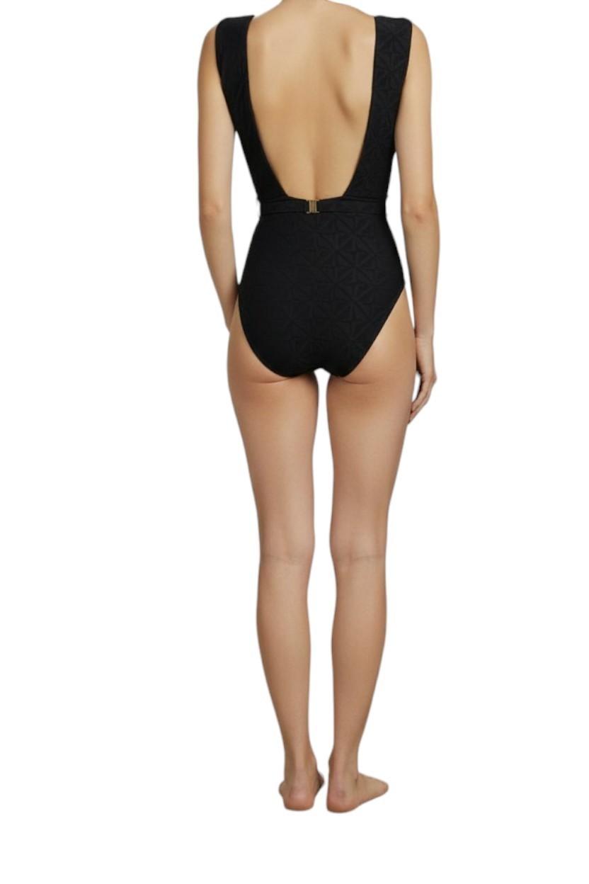 Zimmermann Maxine Textured One Piece |Black, Low Plunging V-Neck, Backless, Belt