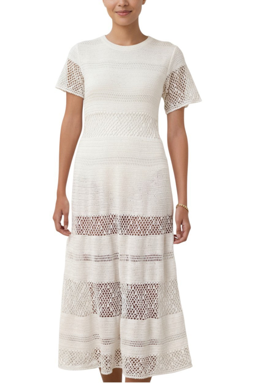 Zimmermann Ottie Crochet Dress |Ivory/White, Sheer, Short Sleeve, Swimsuit Cover