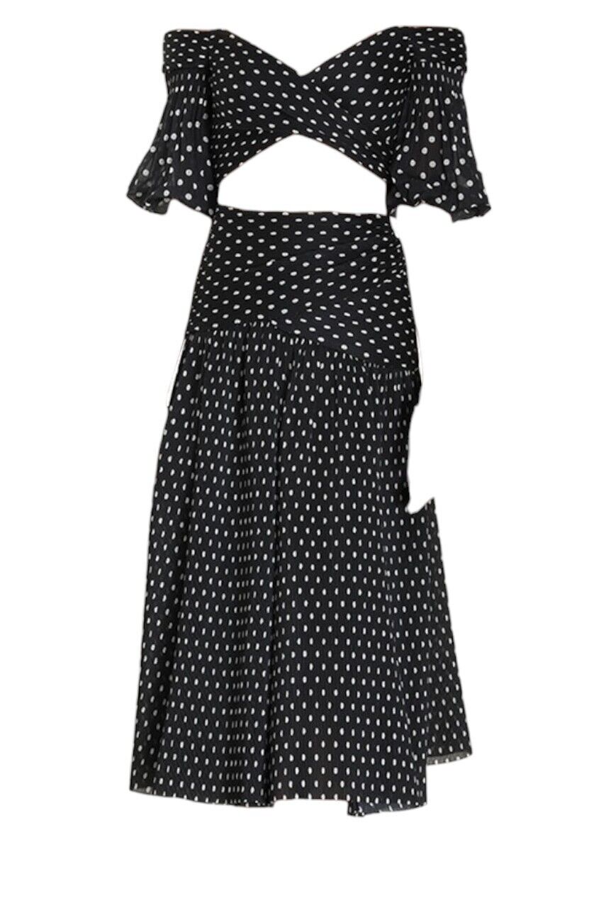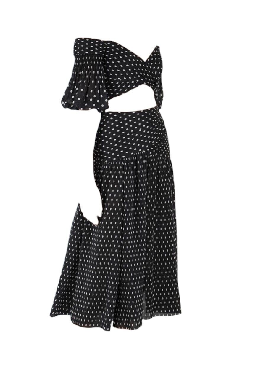 Zimmermann Pleated Midi skirt | Black/Cream/Off White Dot, High Waist