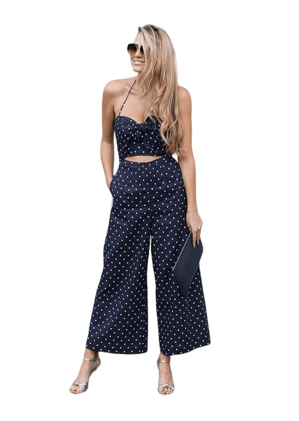 Zimmermann Prima Dot Jumpsuit |Sz 1, Blue, Polka Dot, Cut Out, Tie, Boned Bodice