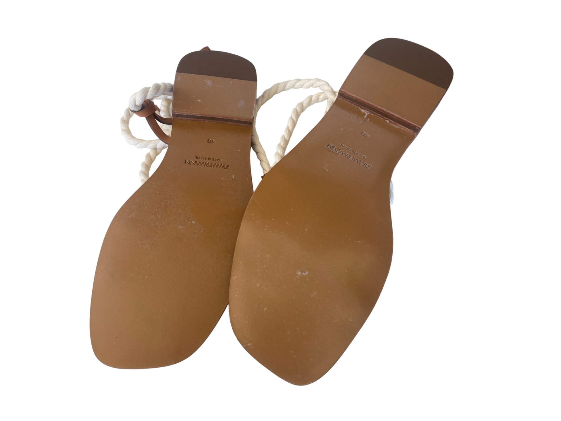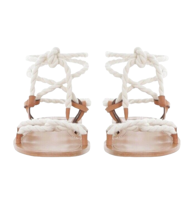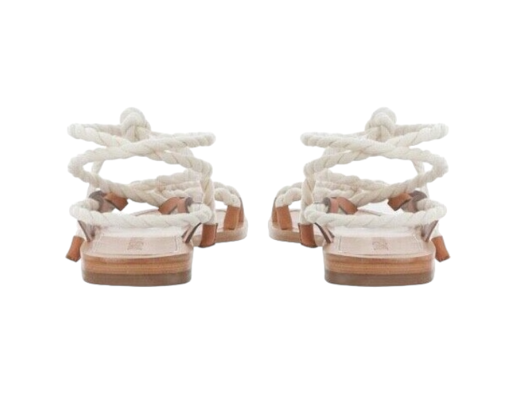 This listing sells a new pair of leather sandals with rope tie detail. The shoes are new and never worn; however, the box is no longer available - the shoes will be shipped in an original Zimmermann dust bag.