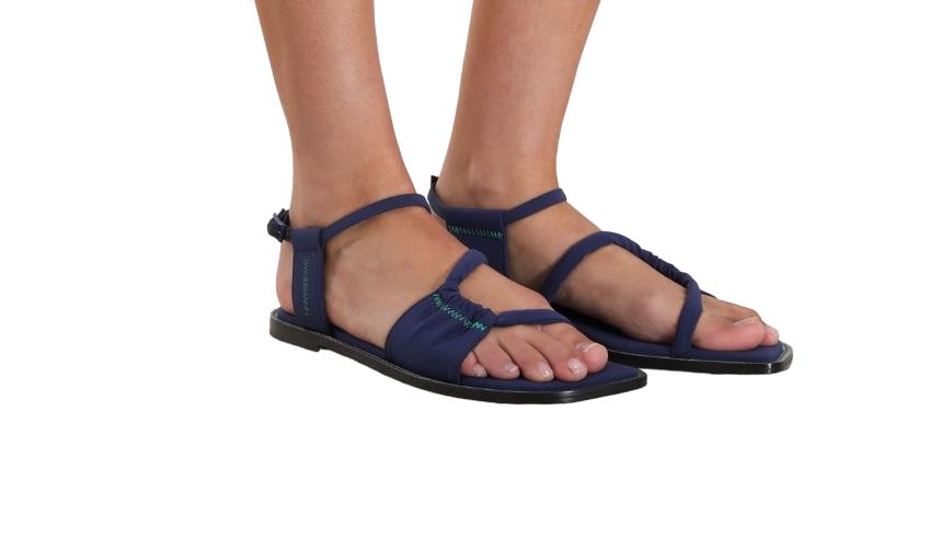 The Scuba Flat Sandal by Zimmermann is a gorgeous, Italian-made flat sandal constructed from scuba material known as Neoprene fabric. It is a style that was launched in their recent 2023 collection.