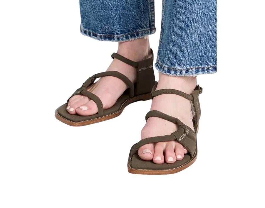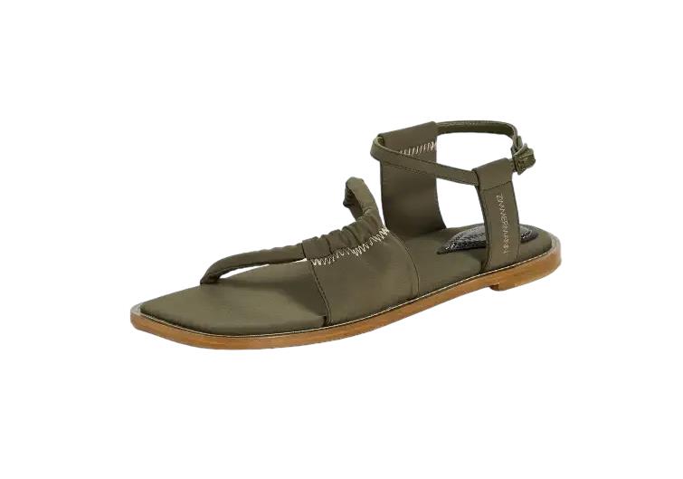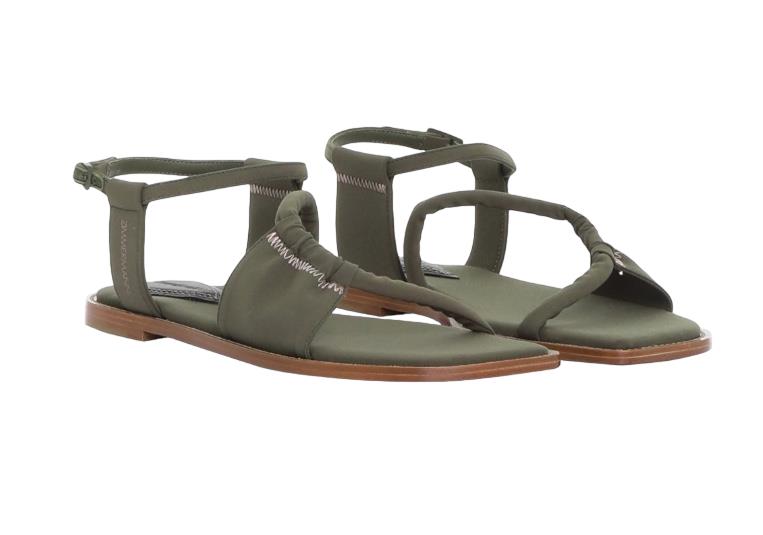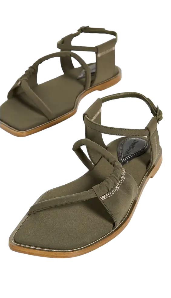Zimmermann Scuba Flat Sandal | Olive / Khaki, Neoprene / Leather, Strappy Flats