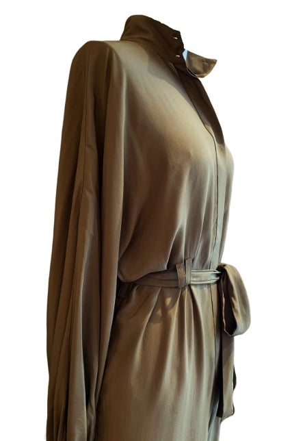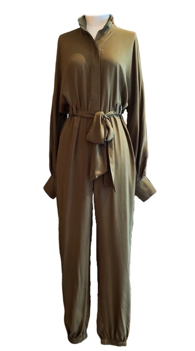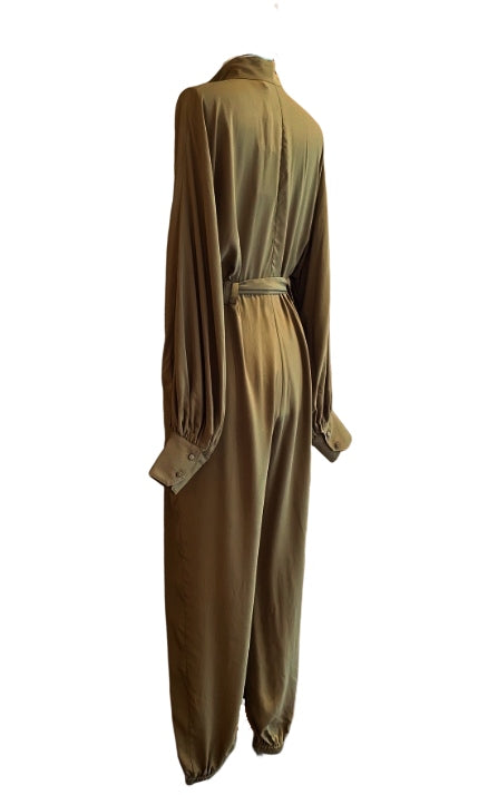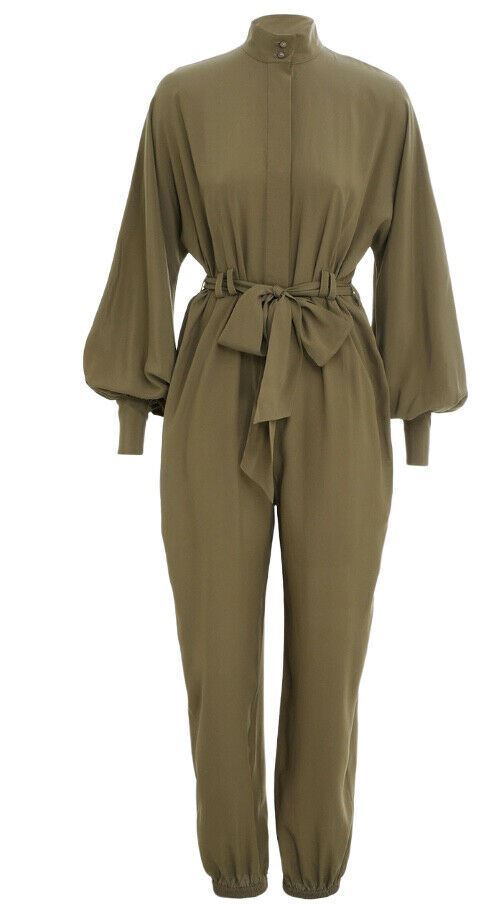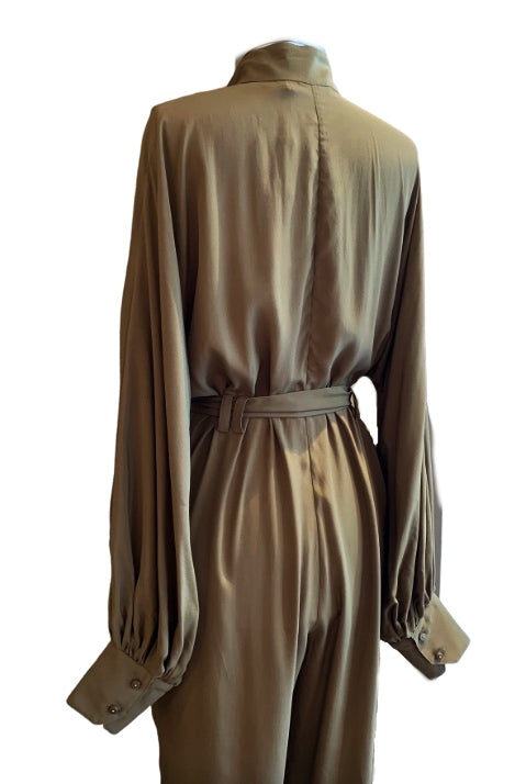 Zimmermann Scarf Tie Jumpsuit | Khaki, Belted, Puffed Dolman Sleeves, Tapered
