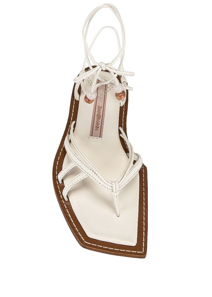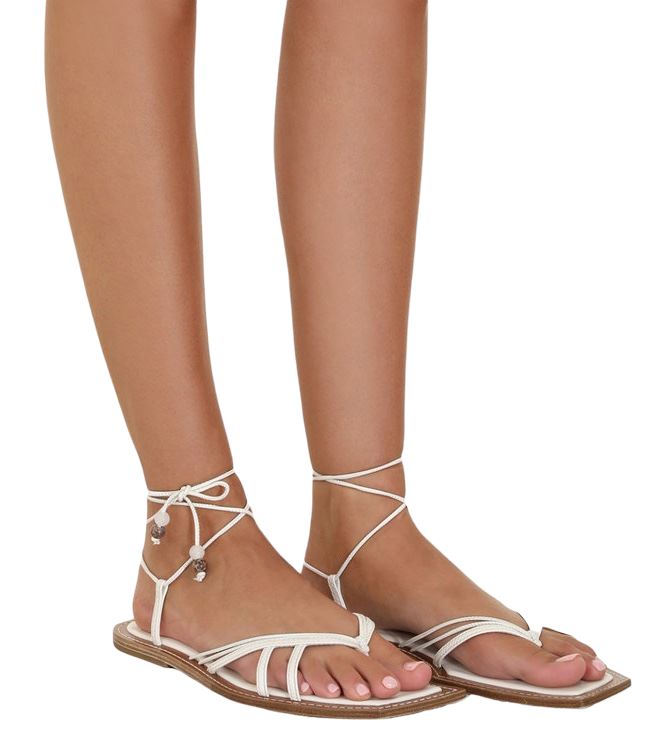 Zimmermann Skinny Strap Tie Flat Sandal | Thong, Off-White, Leather, Ankle Strap