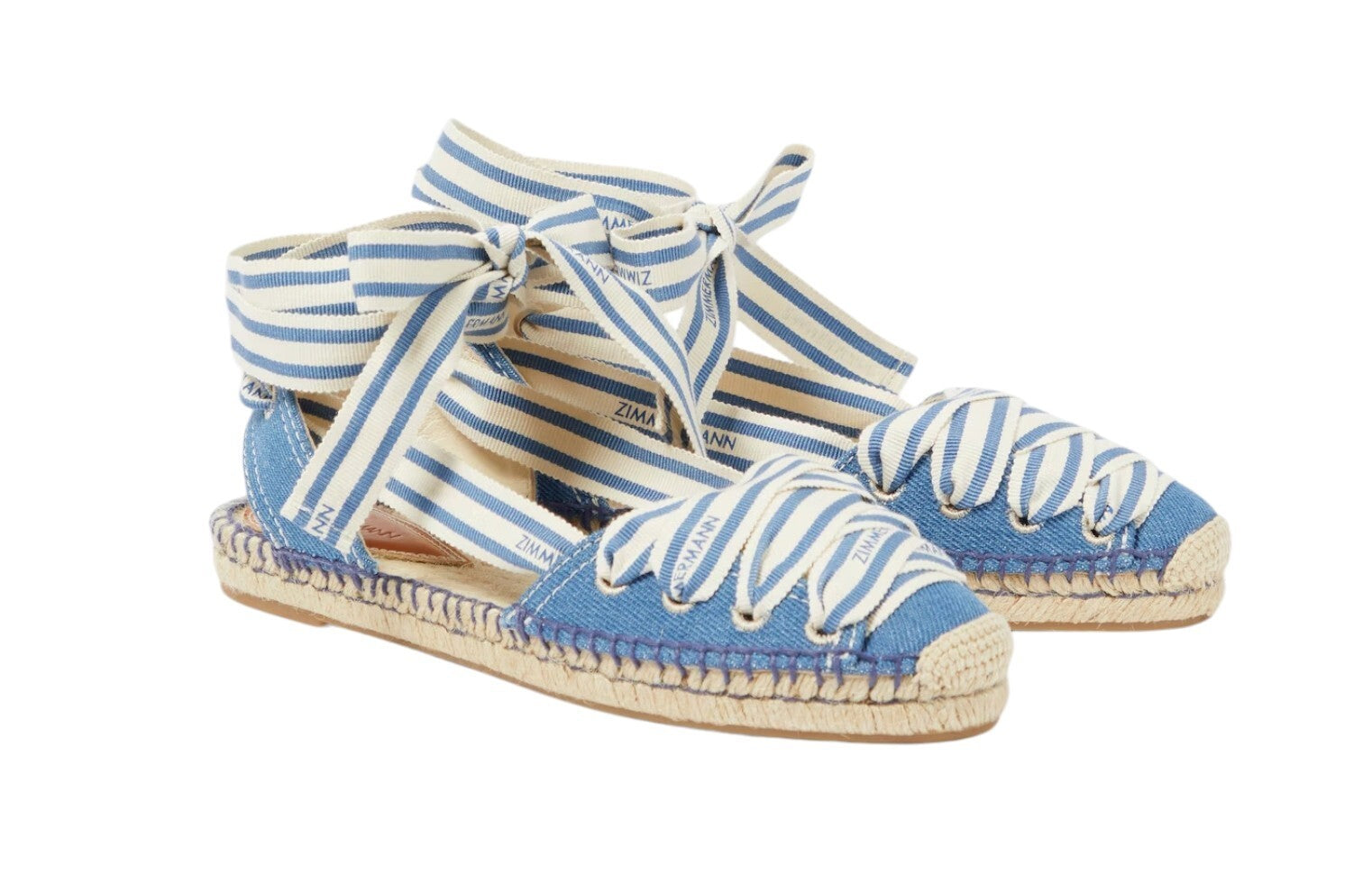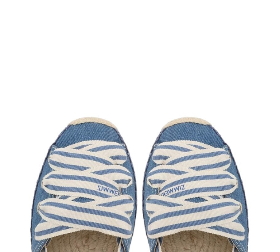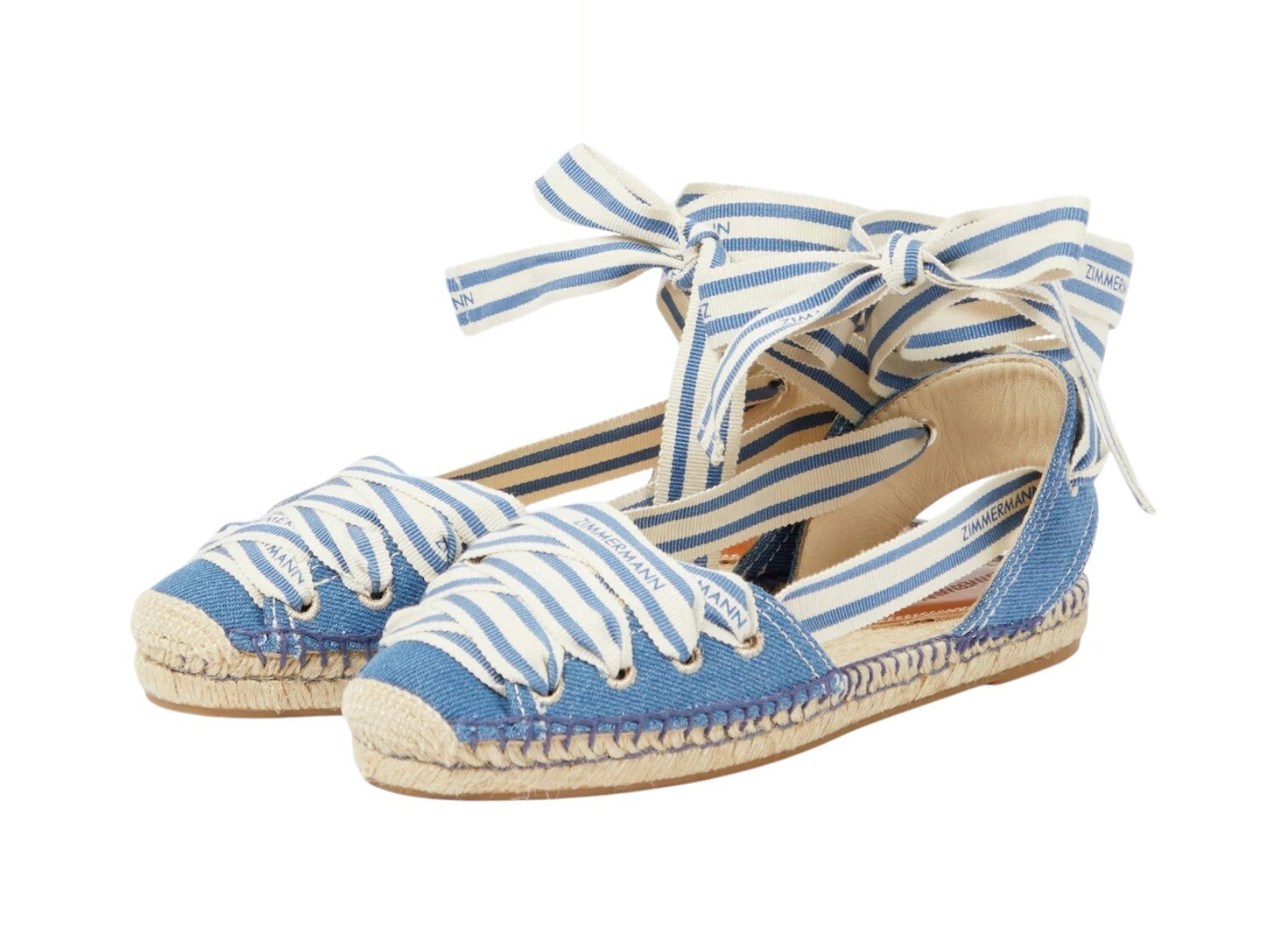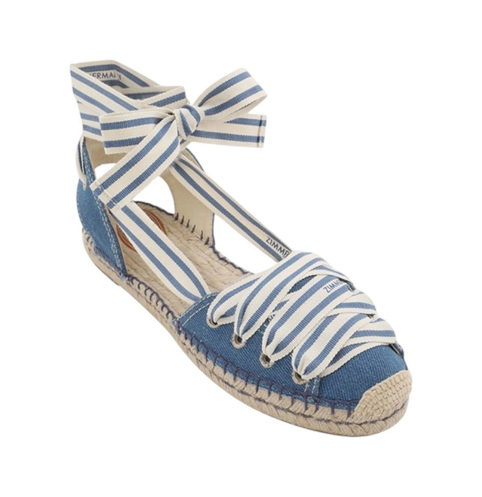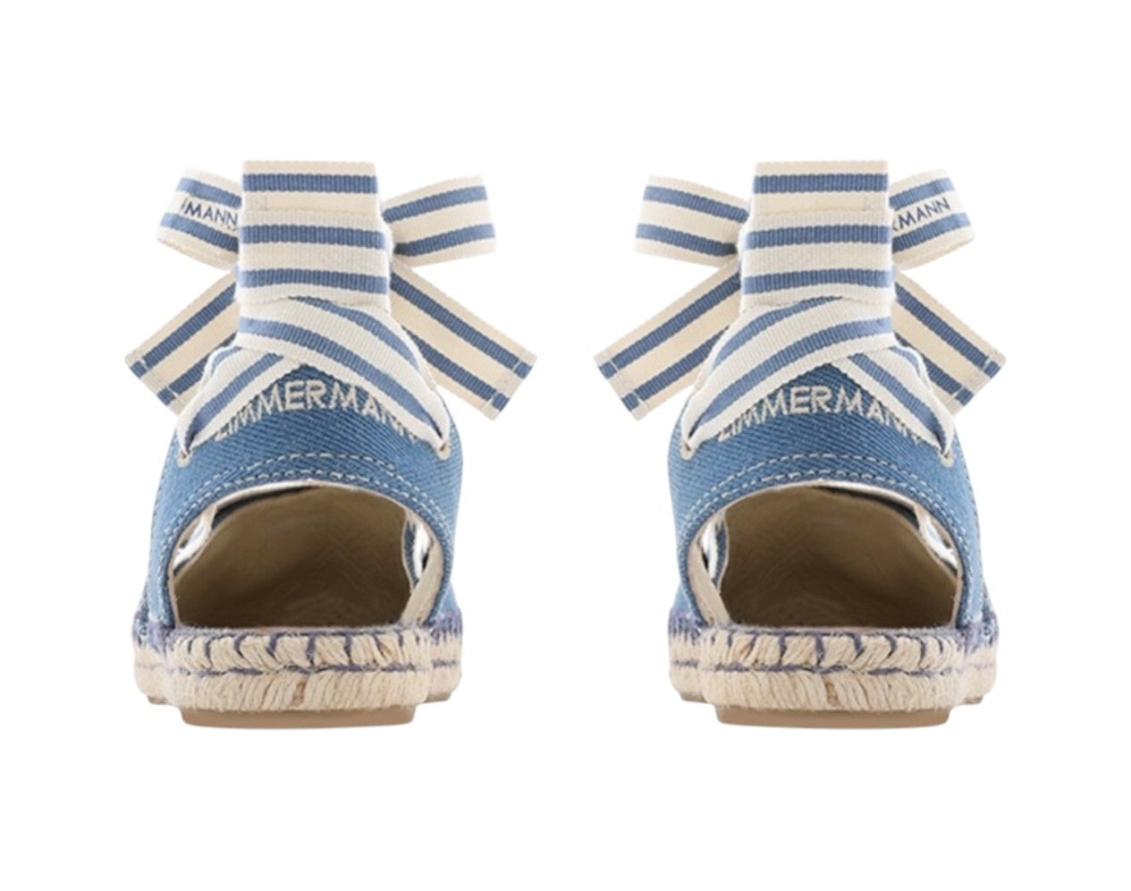 Zimmermann Sol Espadrille Flats| Denim Blue / White, Ankle Strap, Leather Inner